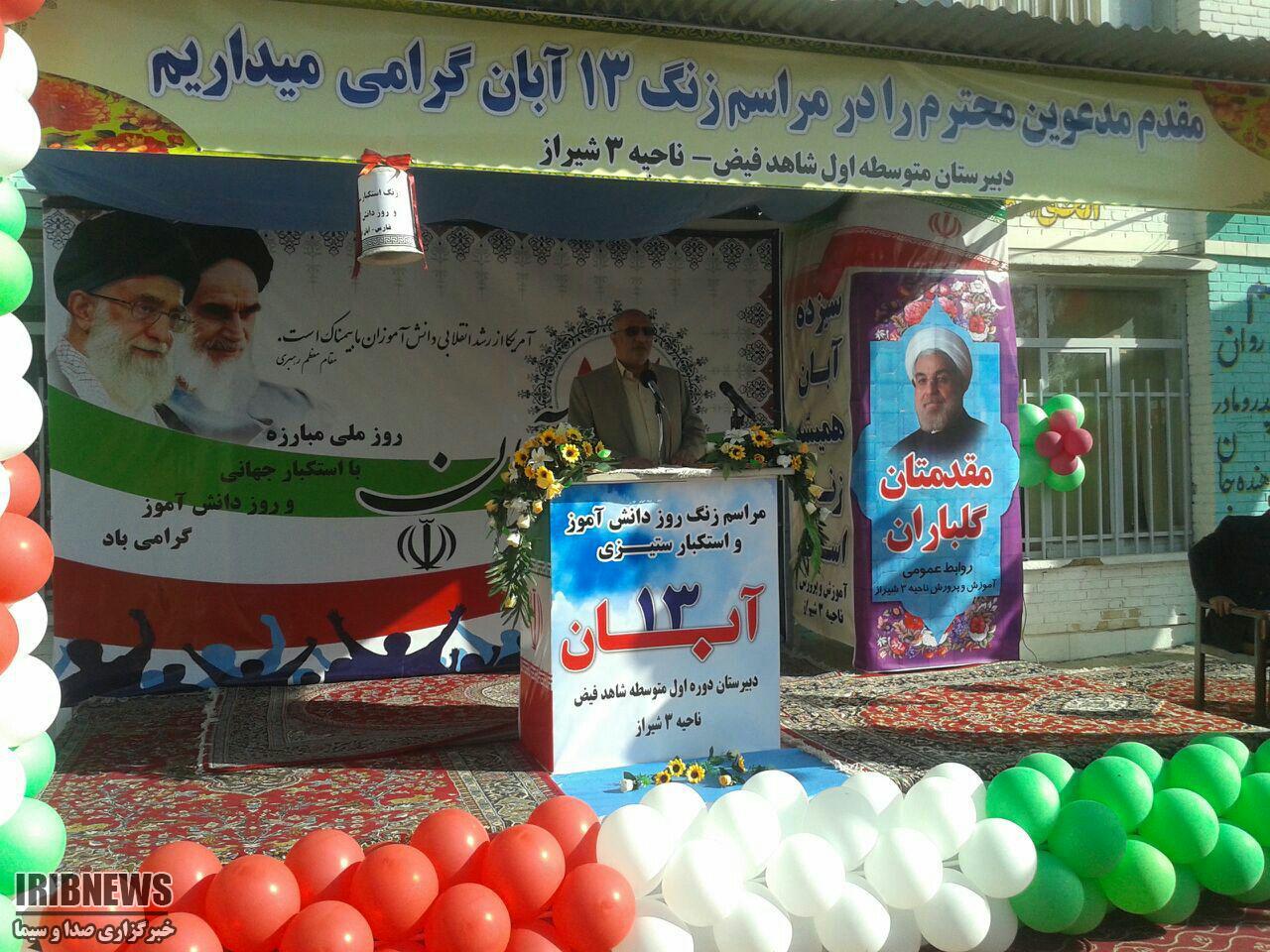نواخته شدن زنگ استکبار ستیزی در مدارس فارس + فیلم و عکس