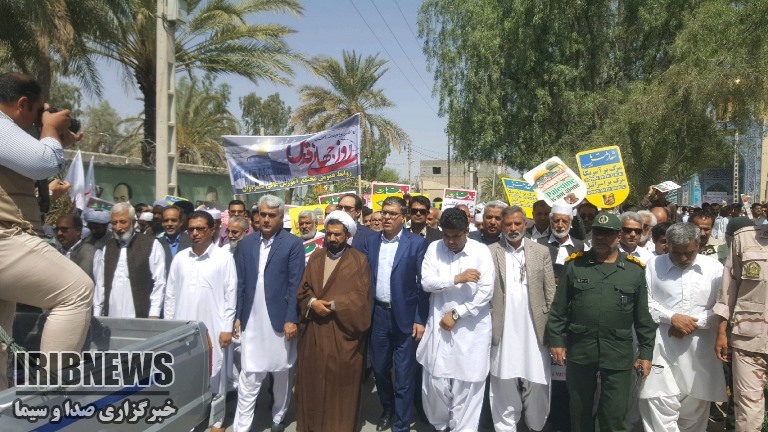راهپیمایی جهانی روز قدس با حضور گسترده مردم در برخی نقاط سیستان و بلوچستان در حالی برگزار شده است که دمای هوا 40 درجه سانتی گراد بالای صفر است.