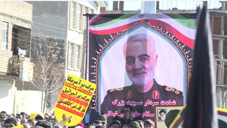 ضمن گرامیداشت یاد و خاطره شهید سردار قاسم سلیمانی، فریاد انزجار خود را از این حمله تروریستی ابراز و با سر دادن شعارهای مرگ بر آمریکا و مرگ بر اسراییل این اقدام تروریستی را محکوم کردند.