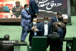گروه عکس خبرگزاری صداو سیما ؛ آقای محمد باقر قالیباف رئیس مجلس شورای اسلامی پس از پایان شمارش آرای نمایندگان برای وزیر پیشنهادی صنعت معدن و تجارت، تصریح کرد: نمایندگان مجلس با ۱۷۵ رای موافق، ۸۰ رای مخالف و ۹ رای ممتنع از مجموع ۲۶۴ آرای ماخوذه؛ به آقای رزمحسینی به عنوان وزیر صنعت معدن و تجارت رای اعتماد دادند.