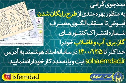 مددجویان اصفهانی برای رایگان شدن قبوض آب، برق و گاز خود بر اساس رعایت اصلاح الگوی مصرف الزامی است کدهای اشتراک قبوض خود را در سامانه سها ثبت کنند.