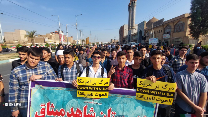 راهپیمایی روز ملی مبارزه با استکبار جهانی، صبح امروز (۱۳ آبان) در اهواز همزمان با سراسر کشور با شعار " نظم نو جهانی، با نسل آرمانی، در حال برگزاری است.