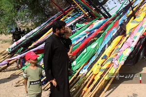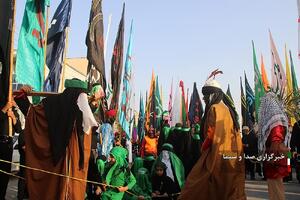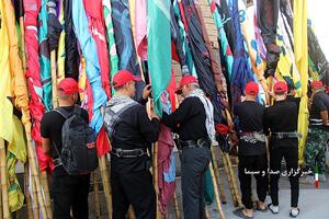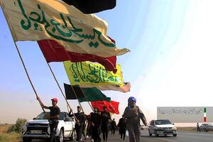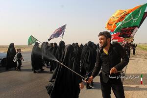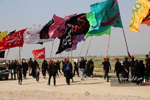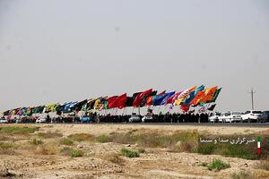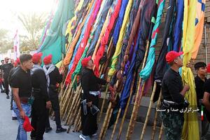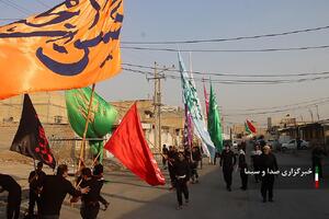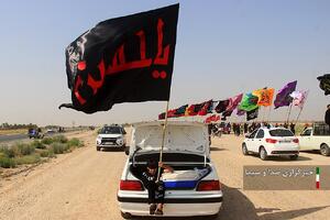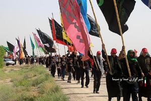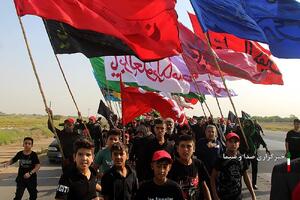 موکب ۳۰۰ نفری هیئت "عشاق الحسین" رامشیر حامل بیرق‌های حسینی با پای پیاده برای زیارت اربعین حسینی در جاده آبادان در حال حرکت به سمت کربلای معلی هستند. کاروان "عشاق الحسین" متشکل از زائران شهر‌های مختلف خوزستان، استان تهران و استان مازندران است که با پای پیاده مسیر ۷۰۰ کیلومتری را از شهر رامشیر طی خواهند کرد.