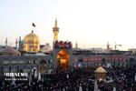 آیین سنتی «اذن عزای حضرت سیدالشهدا (ع)» در آستانه فرارسیدن ماه محرم، همزمان با غروب آفتاب در حرم رضوی برگزار شد و در این آیین پرچم گنبد مطهر و پوشش ضریح امام رضا(ع) نیز به رنگ سیاه درآمد.
